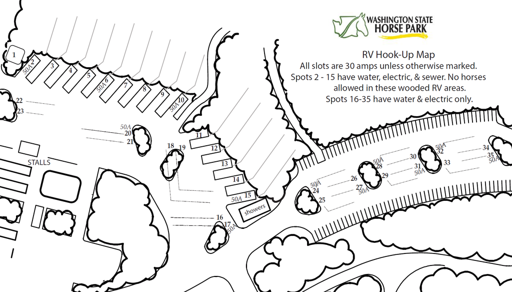 Use of Park facilities is primarily reserved for people visiting with horses. If you are not planning to bring a horse, email registration@wahorsepark.org with your request to see if RV or dry camping space will be available.